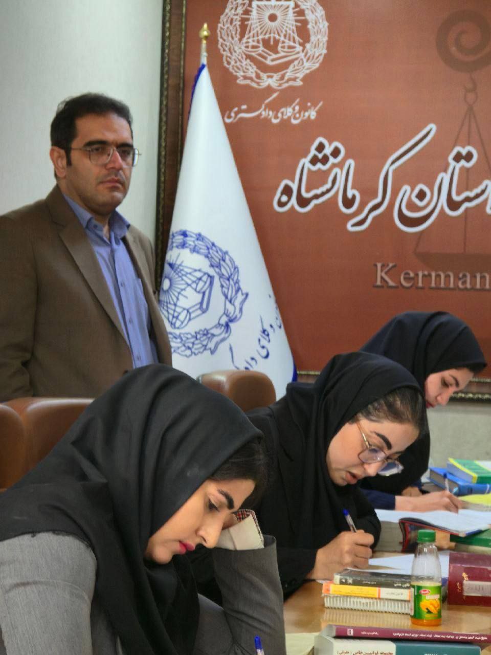 گزارش تصویری برگزاری آزمون اختبار کار آموزان پذیرفته شده آزمون ورودی ۱۴۰۰ (که پیش تر دوران کاراموزی را درمرکز وکلا سپری نمودند) در مورخه ی ۱۴۰۴/۰۸/۱۵ در محل کانون وکلای دادگستری استان کرمانشاه